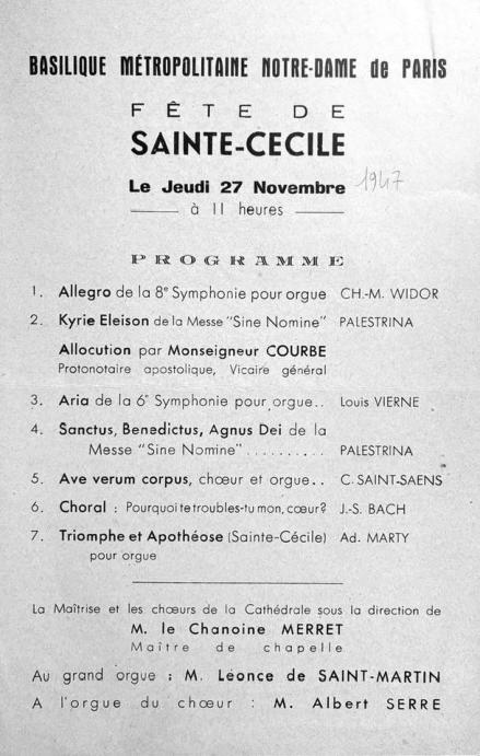 Organistes titulaires Organistes titulaires :Olivier Latry, Vincent Dubois et Thierry Escaich Organiste titulaire adjoint :Thibault FajolesOrganiste titulaire de l’orgue de coeur :Yves CastagnetOrganistes titulaires émérites: Jean-Pierre Leguay et Philippe LefebvreOrganistes célèbres ayants été titulaires : Louis-Claude Daquin, Claude-Bénigne Balbastre, Nicolas Séjan, Jean-Jacques Beauvarlet Charpentier, Louis Vierne, Léonce de Saint-Martin, Pierre Cochereau. Messes avec grand-orgueSamedi 18h00, dimanche 10h00, 11h30, 18h00DImanche Vêpres 17h15Audition d’orgueDimanche, 16hConcertsMardi, 20h30VidéosOlivier LatryVincent DuboisJohan VexoPhilippe LefebvreJean-Pierre LeguayPierre MoreauAudioLéonce de Saint-Martin Interview