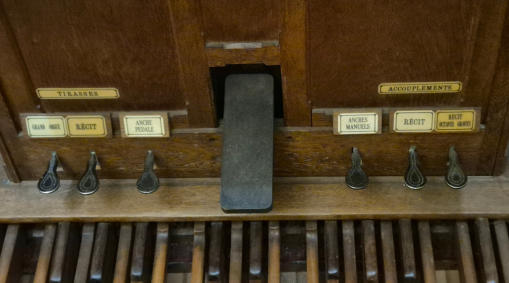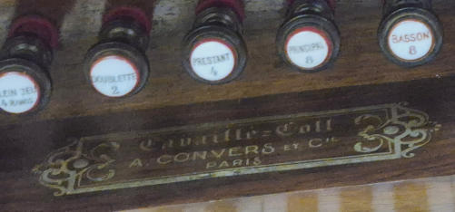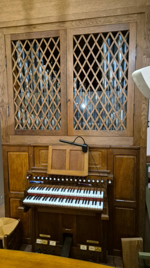 E6Cet orgue a été construit par Cavaillé-Coll-Convers dans les années 1920 pour un site qui demeure inconnu. Il a probablement été transféré à son emplacement actuel par Lalmand dans les années 1970, époque à laquelle il a été installé dans un angle de l’église derrière un faux buffet (voir photo) et profondément remanié. Aucune autre information sur cet orgue n’est disponible.